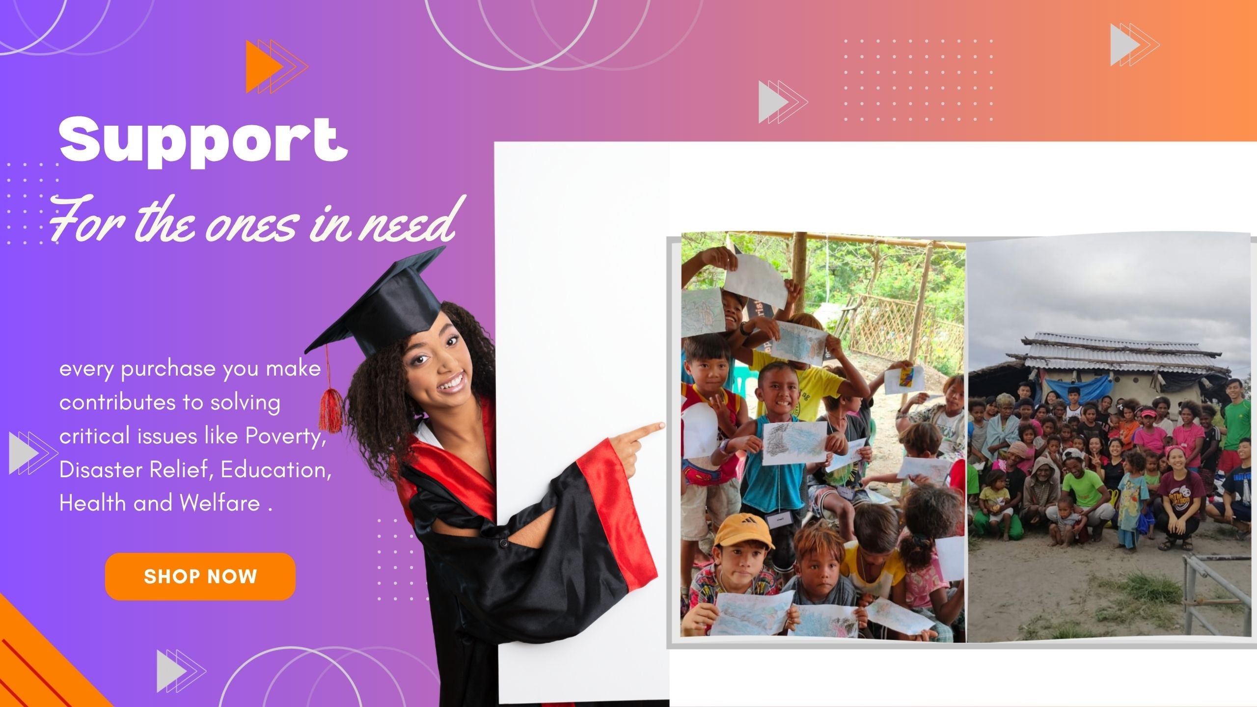 By shopping with us, you’re not just a customer—you’re a change-maker. Together, we can empower vulnerable communities, bring hope to disaster victims, and ensure brighter futures for countless lives. Explore our platform today and join a growing movement of shoppers turning purchases into powerful acts of kindness. Let’s make every check out count!