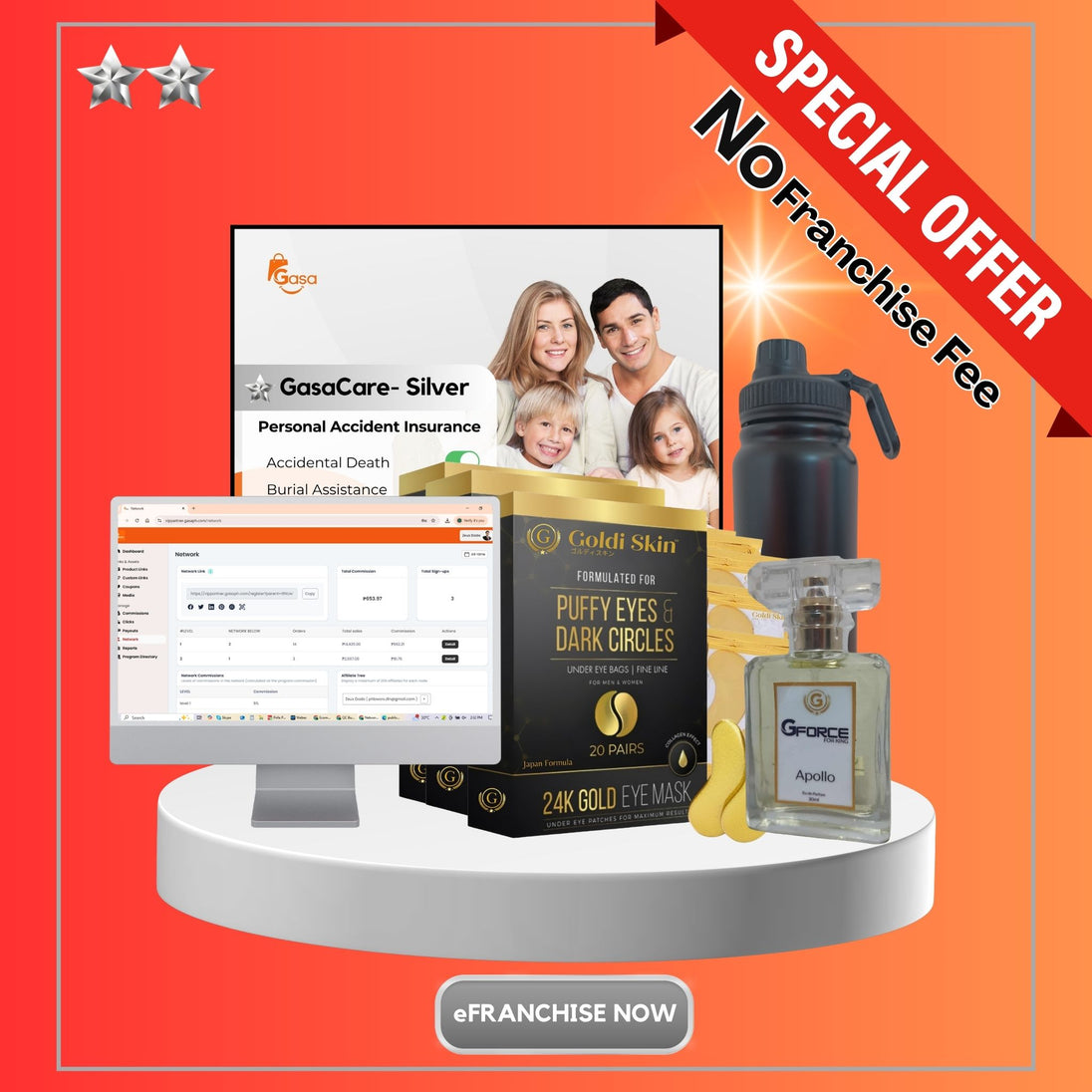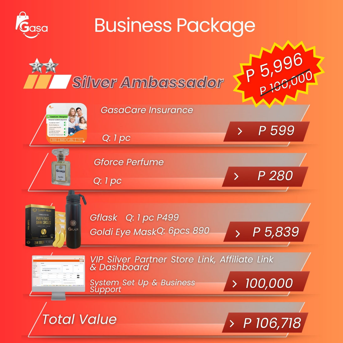 Business Ambassador Silver Package - 1 Gasa Insurance, 1 Gforce Perfume, 1 Gflask, 6 Goldi Eye Mask